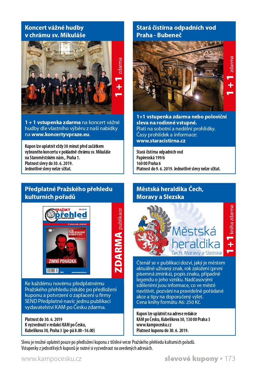 Ve spolupráci s partnery jsme pro Vás připravili slevové kupony. Slevu je možné uplatnit pouze po předložení kuponu z tištěné verze Pražského přehledu kulturních pořadů.