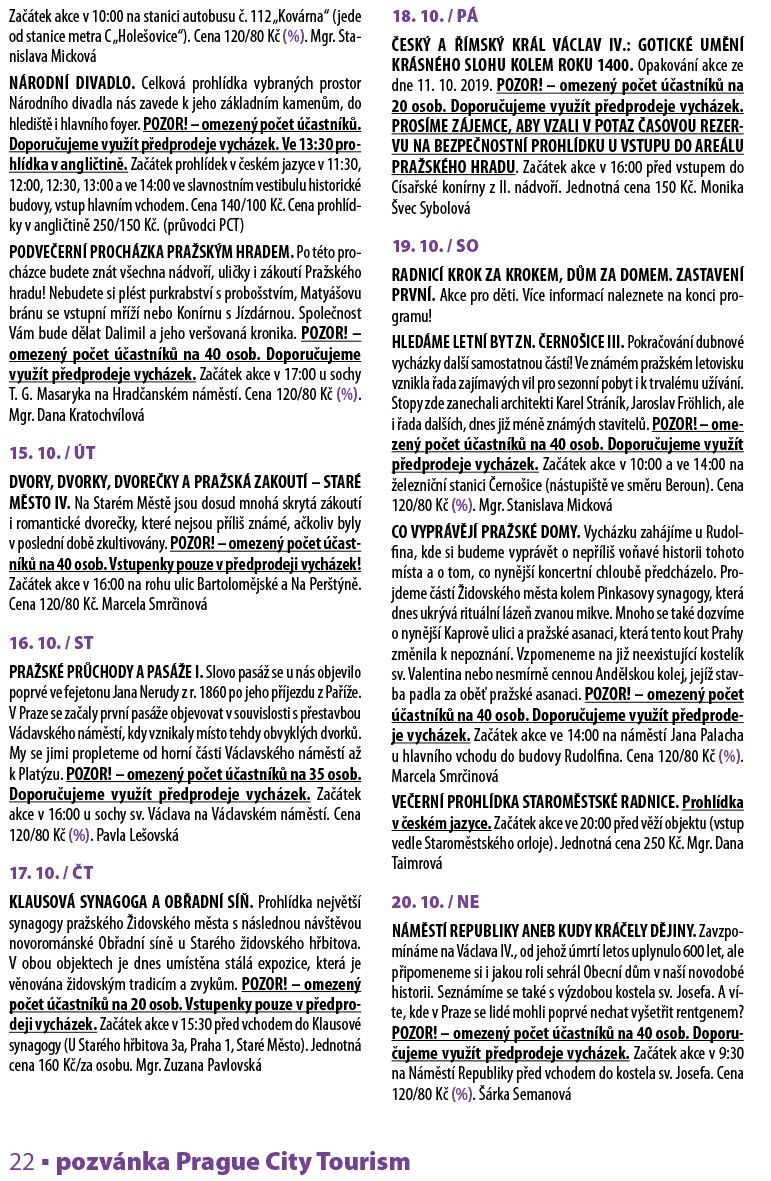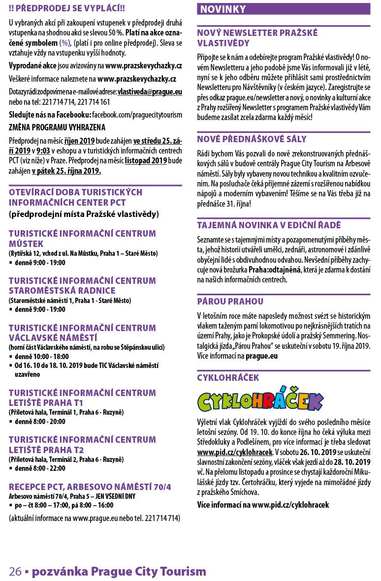 Vyprodané akce jsou avizovány na www.prazskevychazky.cz