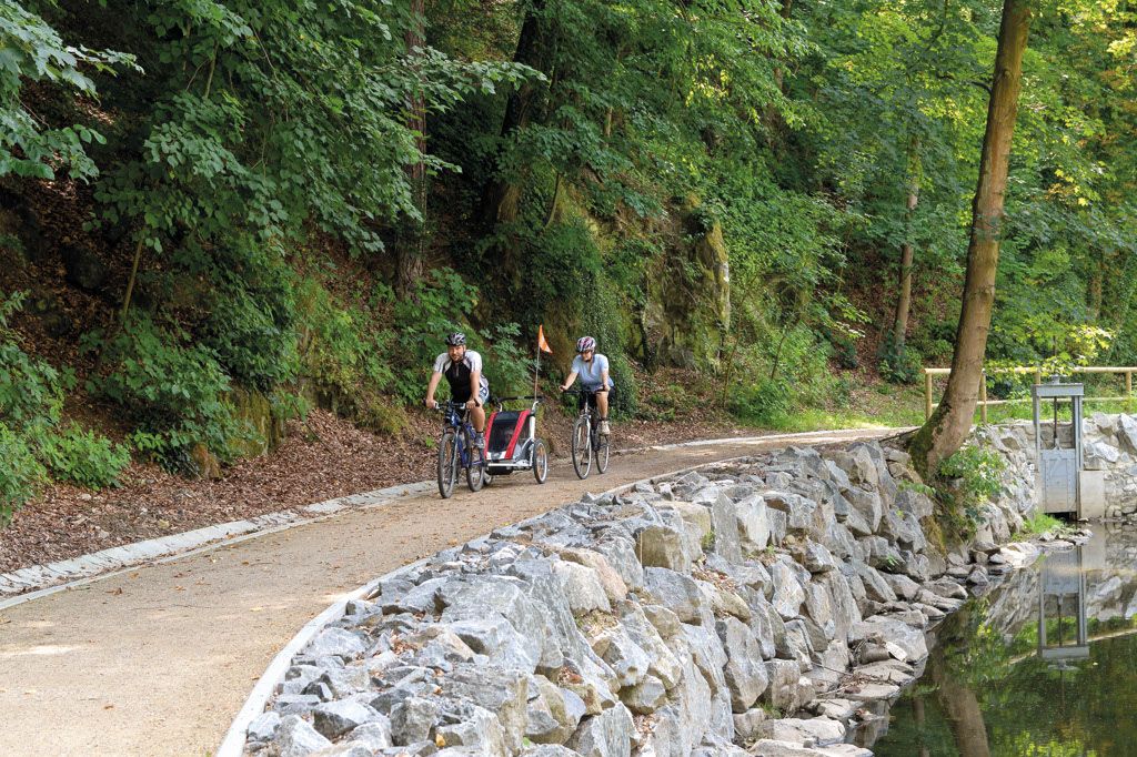 Přímo z historického centra můžete vyrazit po cyklostezce údolím Tismenického potoka a podél řeky Lužnice, úzkým kaňonem, jehož srázné břehy zarůstá bujná lesní vegetace, kolem geologické expozice v tzv. Modrém lomu až k Harrachovce.
