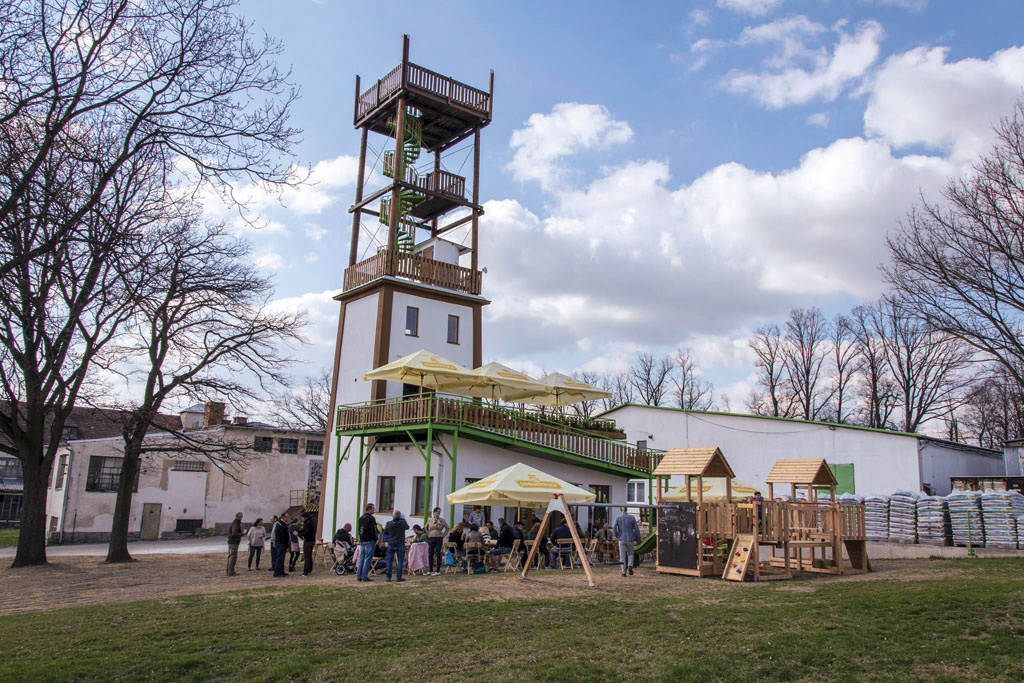 Spodní část věže tvoří původní zděné silo na piliny, nad ním se nově tyčí dřevěná nástavba s točitým ocelovým schodištěm. Není bez zajímavosti, že originální věž zrekonstruoval majitel pan Lukáš Kvídera z vlastních prostředků, bez jakékoliv dotace, a téměř většina prací byla provedena svépomocí.