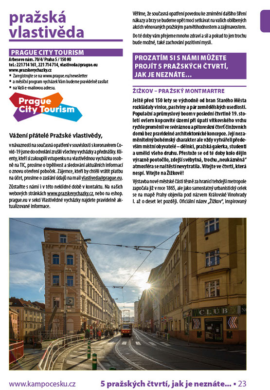 Zůstaňte s námi i v této neklidné době v kontaktu. Na našich webových stránkách www.prazskevychazky.cz, nebo na eshop.prague.eu v sekci Vlastivědné vycházky najdete pravidelně aktualizované informace.