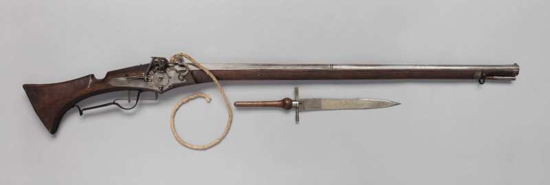 V části výstavy, která se věnuje období Třicetileté války nacházíme zbraně, které byly přítomny jednomu z určujících období evropských dějin. Za zmínku zde stojí soubor jezdeckých mečů, pistolí s kolečkovým zámkem a dalších ukázek uměleckého průmyslu. Pozoruhodná je například mušketa z počátku 17. století s kombinovaným zámkem a zátkovým bajonetem ráže 15 mm, opatřená ještě původním doutnákem.
