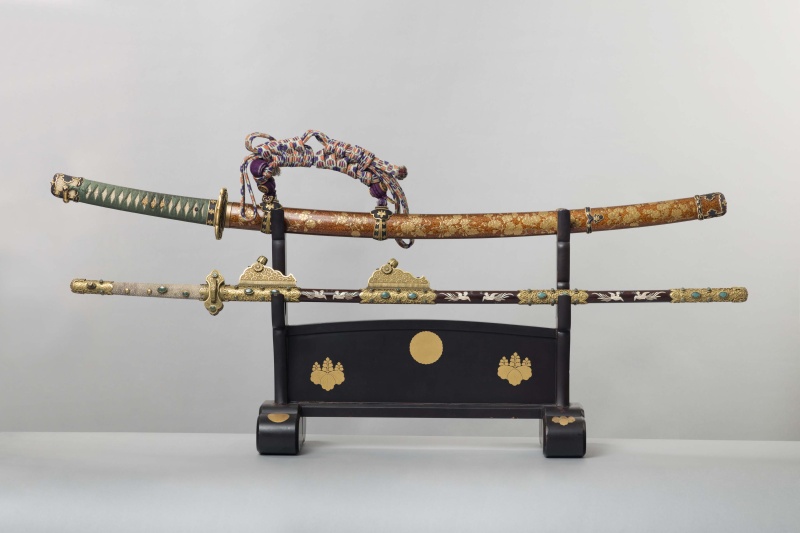 Japonská část výstavy zahrnuje několik výjimečných exponátů japonské nejvyšší muzeální kvality. Jedná se především o soubor předmětů z přímé držby japonské císařské rodiny, meč itomaki no tači s čepelí z konce 13.století zhotovenou Rai Kunitošim, semiformální cestovní pokrývka hlavy džingasa s masivním zlatým kováním, náležící císaři Kómei tennó (1831 - 1867) či ceremoniální dvorský meč kazaridači. Lze důvodně předpokládat, že meč od Rai Magotaró Kunitošiho představuje vůbec nejhodnotnější exponát výstavy a patrně se jedná o nejhodnotnější artefakt japonského umění na našem území.