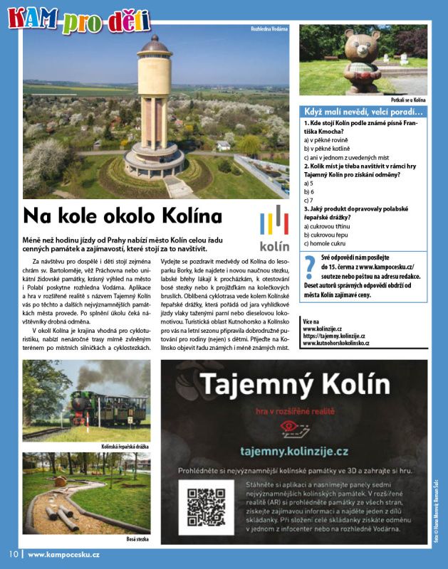 Za návštěvu pro dospělé i děti stojí zejména chrám sv. Bartoloměje, věž Práchovna nebo unikátní židovské památky, krásný výhled na město i Polabí poskytne rozhledna Vodárna. Aplikace a hra v rozšířené realitě s názvem Tajemný Kolín vás po těchto a dalších nejvýznamnějších památkách města provede. Po splnění úkolu čeká návštěvníky drobná odměna.