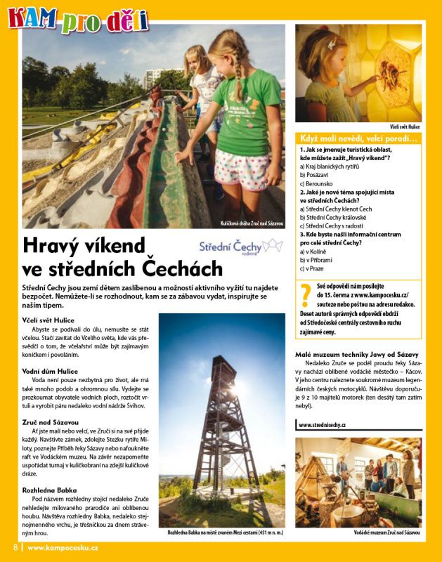 Střední Čechy jsou zemí dětem zaslíbenou a možností aktivního vyžití tu najdete bezpočet. Nemůžete-li se rozhodnout, kam se za zábavou vydat, inspirujte se naším tipem.