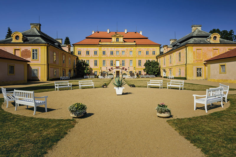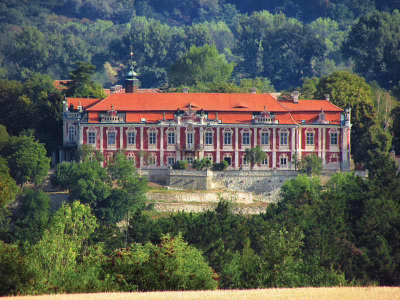 To už ale pokračujeme dále směrem na Žatec a pár kilometrů za touto chmelovou metropolí narazíme na zámek Stekník. Rokokovou perlu s italskými terasovitě uspořádanými zahradami nemůžete při svém putování vynechat. Pokud sem vyrazíte o letních prázdninách, pravděpodobně si užijete příjezd na zámek silnicí vedoucí v srdci chmelnic.