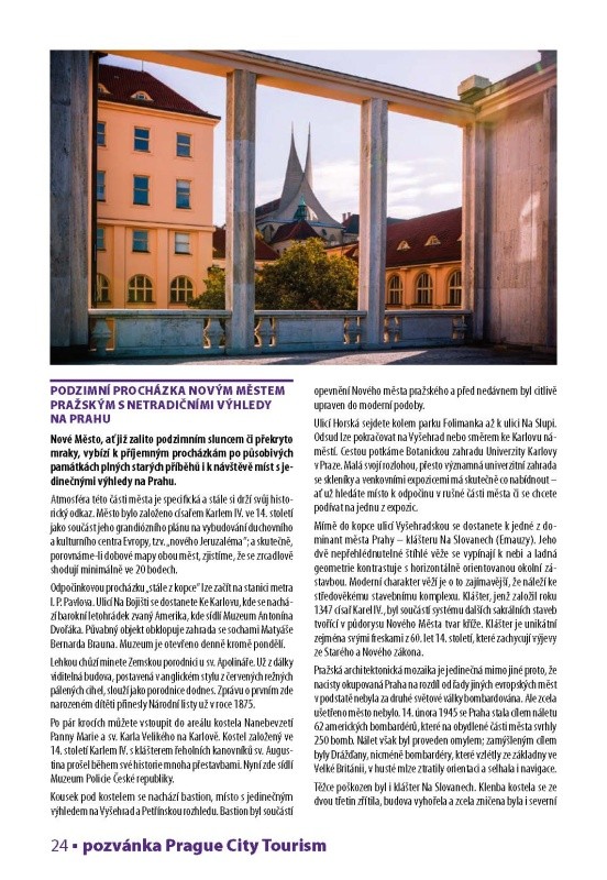 Nové Město, ať již zalito podzimním sluncem či překryto mraky, vybízí k příjemným procházkám po působivých památkách plných starých příběhů i k návštěvě míst s jedinečnými výhledy na Prahu.