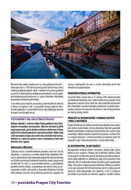 Během období 2. světové války Praha patřila k těm šťastnějším evropským metropolím. Válečné běsnění ji příliš nepoznamenalo, proto dodnes můžeme obdivovat většinu jejích historických památek v původní podobě. Válka však i zde zanechala stopy a do určité míry změnila tvář města. Vydejte se s námi na místa s touto významnou částí naší historie úzce spjatá.