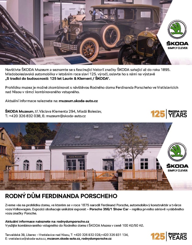 E: vratislavice@skoda-auto.cz, muzeum.skoda-auto.cz, rodnydumporsche.cz