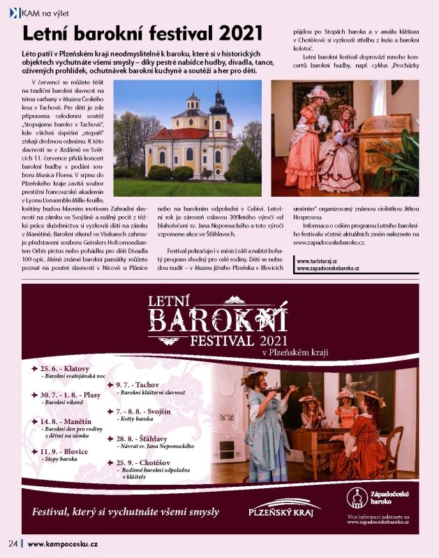 Léto patří v Plzeňském kraji neodmyslitelně k baroku, které si v historických objektech vychutnáte všemi smysly – díky pestré nabídce hudby, divadla, tance, oživených prohlídek, ochutnávek barokní kuchyně a soutěží a her pro děti.