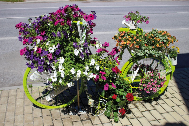 Pokud se vydáte do Veselí nad Lužnicí, půvabného letoviska na jihu Čech od června do září, uvítá vás mnoho originálně vyzdobených květinových kol.