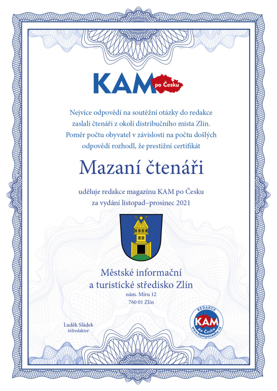 uděluje redakce magazínu KAM po Česku za vydání listopad–prosinec 2021