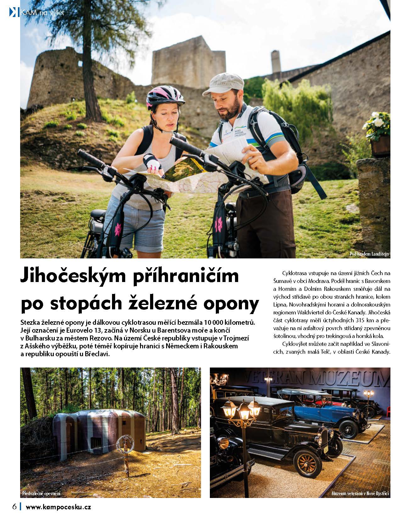 Cyklotrasa vstupuje na území jižních Čech na Šumavě v obci Modrava. Podél hranic s Bavorskem a Horním a Dolním Rakouskem směřuje dál na východ střídavě po obou stranách hranice, kolem Lipna, Novohradskými horami a dolnorakouským regionem Waldviertel do České Kanady. Jihočeská část cyklotrasy měří úctyhodných 315 km a převažuje na ní asfaltový povrch střídaný zpevněnou šotolinou, vhodný pro trekingová a horská kola.