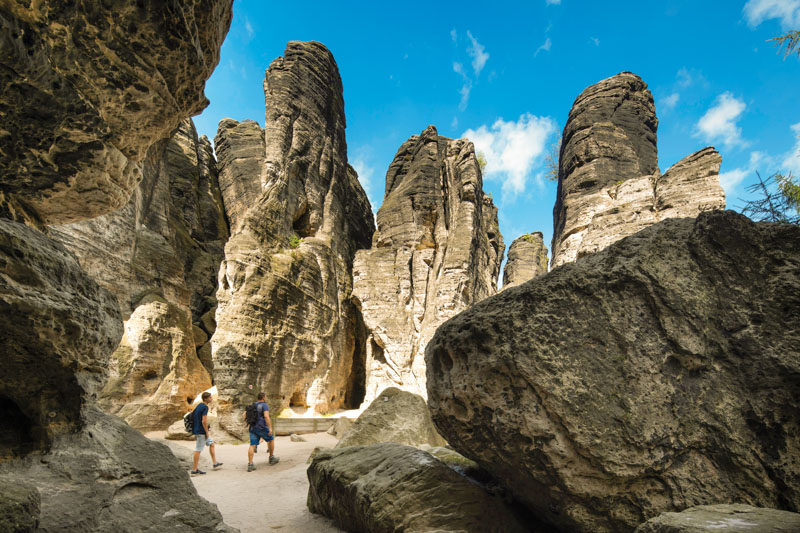 Kouzelník čas vytvořil za miliony let z pískovcového monolitu fantaskně a neuvěřitelně tvarovaná skalní města, osamělé jehly a věže, důstojné stěny strážící nejkrásnější říční údolí Evropy, Labský kaňon, pukliny a soutěsky. Tiské stěny jsou pískovcové skalní město poblíž Tisé u Ústí nad Labem, které si zahrálo ve známém filmu Letopisy Narnie.