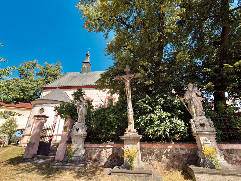 Kostel svatého Václava – kulturní památka – zmiňován již 1399, 1618 vypálen, 1621 obnoven, 1801 téměř zničen požárem, opraven až 1991 a pohřbívalo se tu do konce 19. století. Za zmínku stojí gotický presbytář, socha sv. Václava (1647), náhrobníky s figurálními reliéfy i dva památné stromy.