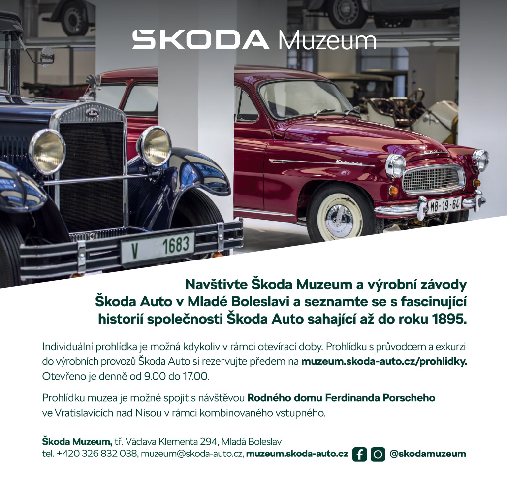 tel. +420 326 832 038, muzeum@skoda-auto.cz, muzeum.skoda-auto.cz O riJ @skodamuzeum