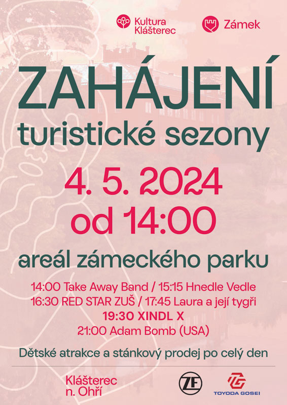 Hned na začátku května se můžete podívat na tradiční zahájení turistické sezony v areálu zámeckého parku. To proběhne 4. května a kromě stánkového prodeje a dětských atrakcí se na vás těší také Laura a její tygři, Xindl X či Adam Bomb.