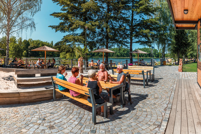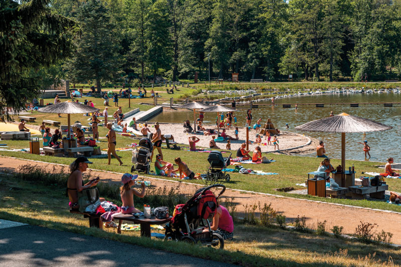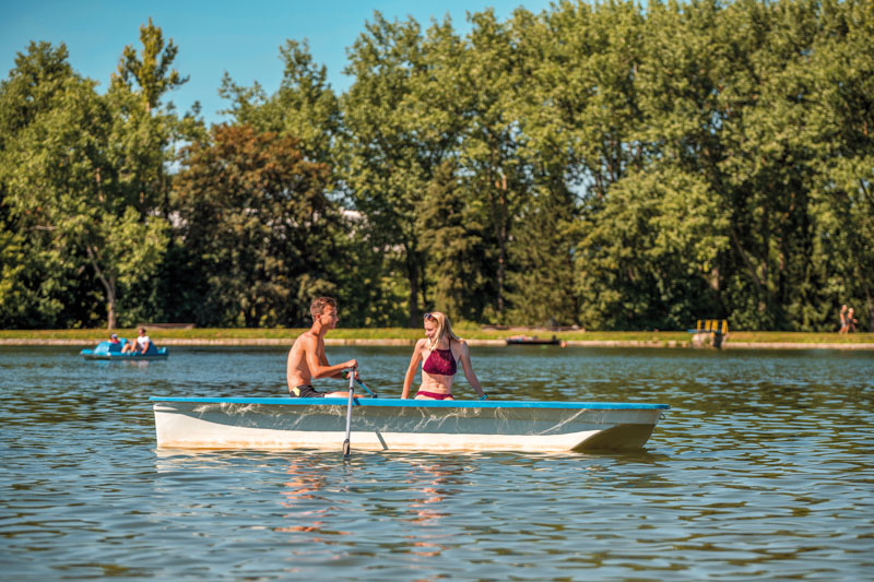 Pro milovníky vody je k dispozici rybník s písečnou pláží, kde si mohou děti i dospělí užívat sluníčka a koupání. Sportovní nadšenci si mohou zahrát Adventure golf, vyzkoušet wakeboarding nebo si půjčit koloběžku či paddleboard v půjčovně sportovních potřeb a strávit aktivní den venku.