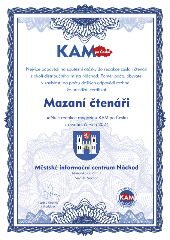 Nejvíce odpovědí na soutěžní otázky do redakce zaslali čtenáři z okolí distribučního místa Náchod. Poměr počtu obyvatel v závislosti na počtu došlých odpovědí rozhodl, že prestižní certifikát