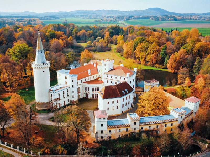Bor u Tachova je obklopený rybníky, i místní zámek byl původně vodním hradem