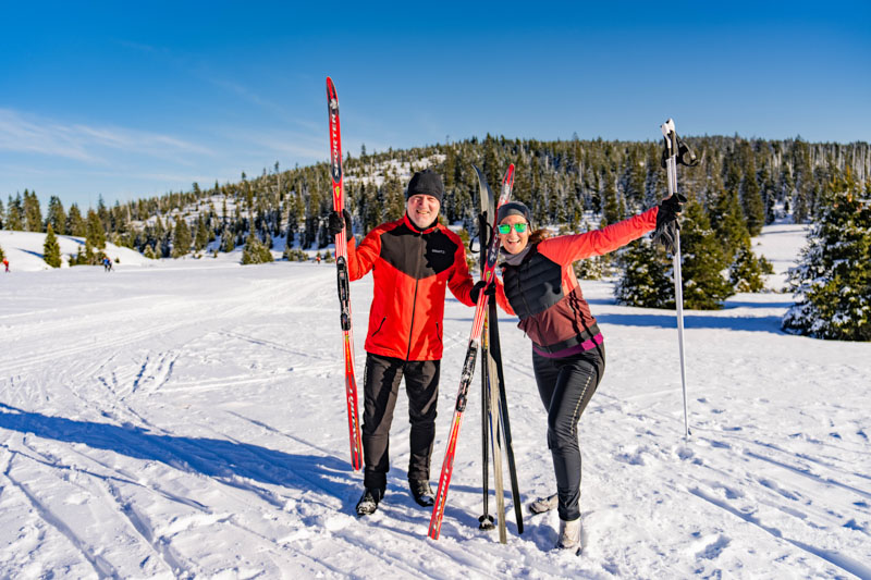 Připraveny jsou rozmanité, různě náročné trasy do bílé stopy i v alternativě pěšky. V našich materiálech i na webu jsou všechny opatřeny QR kódem, po jehož načtení se daný výlet zobrazí přímo v mapovém portálu MAPY.CZ. Zbývá se jen rozhodnout, kam vás to táhne nejvíc. Populární Šumavu není třeba dlouze představovat. Železná Ruda, Modrava, Prášily, Horská Kvilda, Srní jsou známé daleko za hranicemi kraje. Je protkána turistickými cestami a v zimě profesionálně upravenými stopami tvořící síť nekonečných možností pro zimní toulání. Skrytým klenotem je Český les. Čerchov, nejvyšší vrchol tohoto pohoří, dosahuje úctyhodných 1 042 m n. m. A „napadne-li“, slibuje výtečné lyžařské zážitky. V okolí tohoto chodského velikánu je strojově upravováno mnoho kilometrů bílých stop s daleko menším „běžkoprovozem“ než na sousední Šumavě. V nedalekých Caparticích jsou pak připraveny okruhy s velice přívětivým převýšením pro malé a rekreační lyžaře. Hledáte‑li ticho, samotu, klid a přitom skvěle vybroušenou stopu, Český les vás nadchne. Zajímavou variantou jsou určitě také Brdy. Patří sice k poměrně nízkým pohořím, kde bývá sněhová pokrývka pouze za dobrých podmínek, a proto je strojově upravovaných stop jako šafránu. Když je ale příroda štědrá, dvě bílé koleje se rázem ocitnou na většině cest a pěšin, což skýtá nepřeberně možností pro podařený víkendový výlet spojený třeba s dalším poznáváním. Ne náhodou je mezi místními vyhlášená lokalita Padrťské rybníky, jež byla oblíbeným letoviskem už za první republiky.