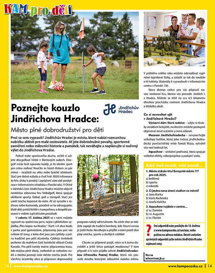 Proč se sem vypravit? Jindřichův Hradec je město, které nabízí rozmanitou nabídku aktivit pro malé cestovatele. Ať jste dobrodružné povahy, sportovně zaměřeni nebo milovníci historie a památek, tak neváhejte a naplánujte si rodinný výlet do Jindřichova Hradce.