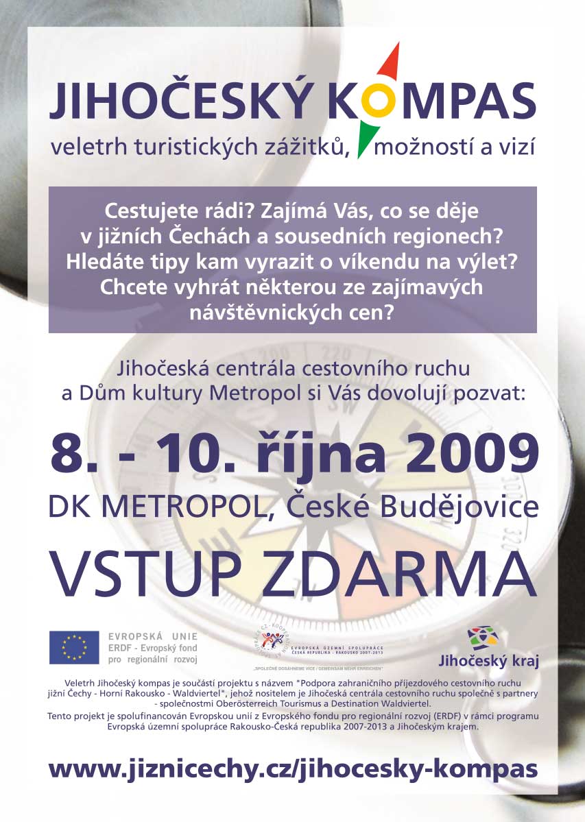 Veletrh turistických zážitků, možností a vizí Jihočeský kompas představuje mezi podobně koncipovanými nabídkovými veletrhy žhavou a velmi zajímavou novinku. Letošní druhý ročník se uskuteční v Českých Budějovicích ve dnech 8.–10. 10. 2009.
