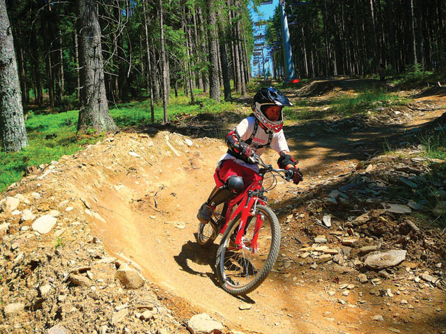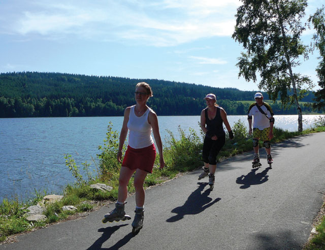 Velorájem neboli rájem pro milovníky aktivit na kolech i kolečkách nazývají místní i turisté území okolo největší tuzemské přehradní nádrže. Mezi Lipnem nad Vltavou a Frymburkem najdete Jezerní stezku, jednu z nejkrásnějších cyklo-in-line tras v Čechách. Nabízí přes 13 km hladkého asfaltu pro bruslení a v délce 8,5 je dokonce osvětlena, takže můžete zakusit na vlastní kůži romantickou projížďku při západu slunce. Kdo chce zažít nevšední dobrodružství z jízdy na speciálních terénních kolech, měl by vyzkoušet Bikepark Lipno a jeho zábavné sjezdové tratě. Lipenský bikepark se jako jediný v Čechách orientuje na začátečníky a rodiny s dětmi, proto nepřekvapí moderní půjčovna sjezdových kol pro děti i dospělé nebo cyklistický kurz s průvodcem. Ke startu tratí na vrcholu Kramolín vás i s kolem pohodlně vyveze čtyřsedačková lanovka.