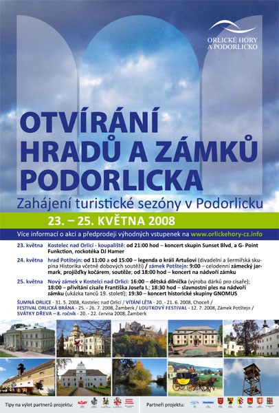 Přijeďte s námi otevřít brány hradů a zámků a zahájit sezónu v Podorlicku. V uších zazní Vám líbezná hudba, na rtech spočine lahodný mok, oči uvidí nevídané a po tvářích Vás pohladí historie…