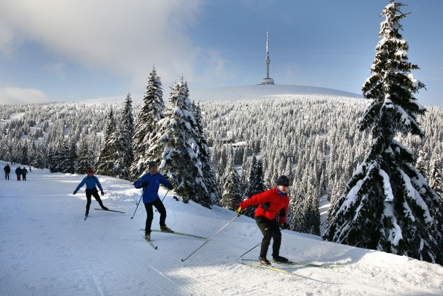 Turistická oblast Jeseníky – horská střediska Ski Centrum Malá Morávka – Karlov www.malamoravka.cz., Praděd – Ovčárna www.fi gura.cz. Ta nabízejí v zimním období výborné sněhové podmínky lyžařům (sjezdovky pro zdatné i méně zdatné, upravené běžecké tratě). Praděd je proslulý tím, že zde bývá nejvyšší sněhová pokrývka včetně prvního a posledního sněhu z celé České republiky. Lázně Karlova Studánka www.kstudanka.cz jejichž věhlas již dávno překročil hranice ČR, nabízejí jedinečnou možnost pro relaxaci v pěkném čistém zdravém prostředí. Mezi další, menší, ale o nic méně atraktivní střediska můžeme v Jeseníkách řadit také lyžařské vleky či areály například v Ludvíkově, Andělské Hoře či ve Vrbně pod Pradědem. www.jeseniky.net