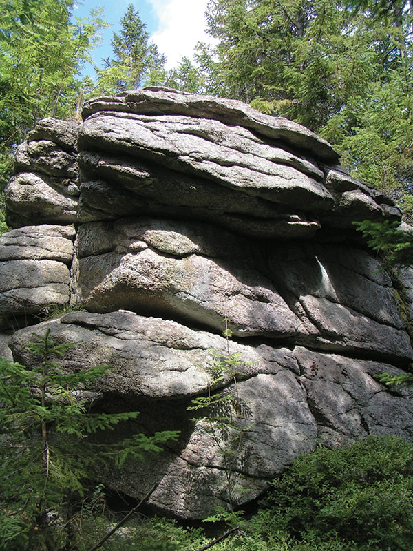 Vrch Slunečná – severovýchodně od Prášil – výstup je náročný pro velké množství velkých balvanů a prohlubní – nedaleko vrcholu je seskupení kamenů s energetickým bodem, Keltům dobře známé.
