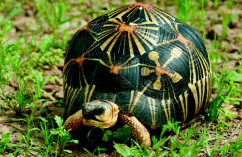 Želva paprsčitá (Geochelone radiata), která se endemicky vyskytuje pouze na