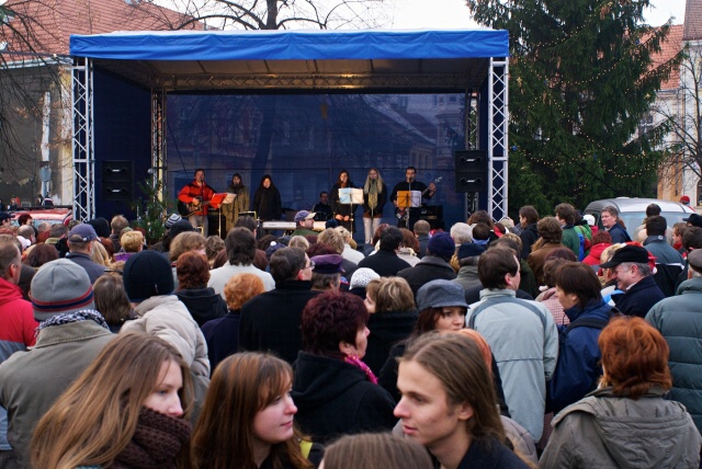 Zpívání koled a vánočních písní na Masarykově náměstí.