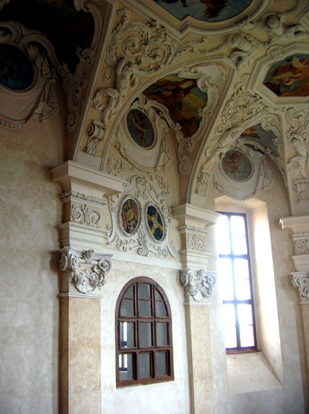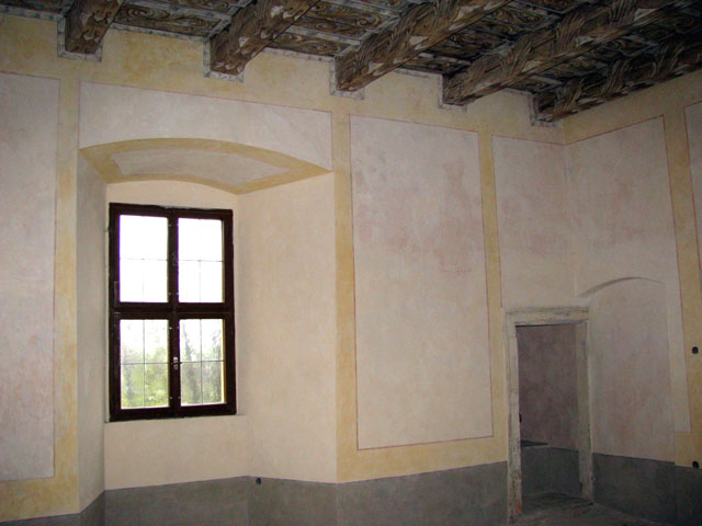 Vývoj architektury bezprostředně navázal na novou tvrz pánů z Jimlína, postavenou ve 14. stol. Původní obytná věž tvrze byla později zakomponovaná do areálu hradu, postaveného v letech 1465–1474 Albrechtem Bezdružickým z Kolovrat. Ještě za Kolovratů a následně za Vřesovců a pánů z Liběchova probíhala postupná přestavba hradu, chráněného příkopy a valy, na zámek. K výraznějšímu doplnění zástavby došlo po smrti Jana z Aldringenu roku 1634, který v závěti odkázal panství Strahovskému klášteru. V době moru se premonstráti uchýlili na Nový Hrad, a protože původní hradní kaple byla pro jejich potřeby příliš malá, položili jižně od paláce základy nové barokní kaple a současně k severní hradbě nechali postavit obytné severní křídlo, které z této strany uzavřelo areál třetího nádvoří.