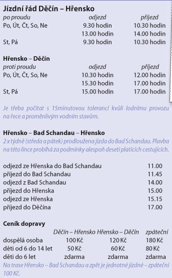 Výletní lodí Poseidon můžete plout z Děčína do Hřenska, případně dále do saského Bad Schandau. Cestujícím se na palubě lodi kromě možnosti občerstvení nabízejí i nádherné výhledy na údolí Labského kaňonu, vypínajícího se místy až do výše několika set metrů nad hladinu řeky a lemovaného scenérií pískovcových masivů, erodovaných do bizarních tvarů a forem. Malebnost skal je umocňována zelení okolních lesů a údolí protkaných toky divokých říček, mezi nimiž se tyčí ohromné pískovcové masivy.