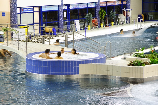 Nabídka pro rekreační a sportovní vyžití zahrnuje krytý plavecký bazén s tobogány, divokou řeku, whirlpool, samostatný dětský bazének, masážní trysky, lůžka, lezeckou síť nad vodou, saunu, parní komoru, masáže, solárium a další. Venkovní letní koupaliště láká soustavou bazénů s různými atrakcemi, dětskými prolézačkami a minigolfovým hřištěm.