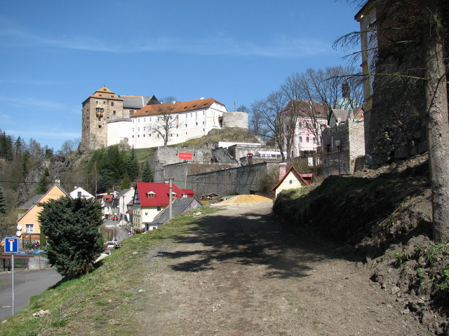 Čas běžel mílovými kroky a hodně vody v říčce Teplé odteklo do moří. Vysoká skála se zhlížela v zrcadle vod. Až ve 13. století se na skalním výběžku objevil hrad, s okrouhlou obrannou věží, který slul Bečov. Rýzmburkové, páni z Oseka, kamenné sídlo pečlivě budovali, až v roce 1387 se pod hradem objevila osada, která rokem 1399 získává městská práva. V tu dobu již drak – postrach okolí, tvrdě spal ve své sluji pod pevným kamenným hradem, jehož majitelé se střídali od Rýzmburků, na Pluhy z Rabštejna, ke Questenburkům. Dále zde pobývali Kounicové a do roku 1945 Beauford – Spontinové.