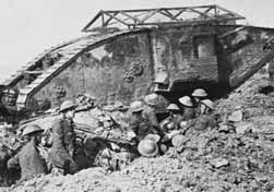 Vlekoucí se poziční bitvy první světové války (1914–1918) měly být rozhodnuty velkými útoky v roce 1916. Německá ofenzíva směřovala na Verdun a měla otevřít postup na Paříž. Boje přinesly 600 000 mrtvých Francouzů a Němců, fronta se však nepohnula. Dohoda podnikla také dvě velké francouzsko- britské ofenzívy, jednu z nich na řece Sommě. V nejkrvavějším masakru první světové války padlo více než 1 300 000 vojáků na obou stranách, fronta se nehnula, ale právě v této bitvě použili Angličané 15. září prvně své tanky. Zajímavostí je, že o jejich užití v armádě se zasadil první lord admirality sir Winston Churchill. První tanky byly 2. února 1916 představeny v Hatfi eld Parku královské rodině, ministru války a náčelníkovi britského generálního štábu. Historie přiřadila tomuto vynálezu hodně názvů, například pozemní loď či křižník, ale nejznámější − tank − vznikl v důsledku přísného utajení. Nikdo totiž neměl mít ani ponětí o existenci tohoto stroje, proto bylo nutné nalézt dostatečně matoucí jméno – z toho důvodu tedy tank neboli „cisterna na vodu“ (water tank).