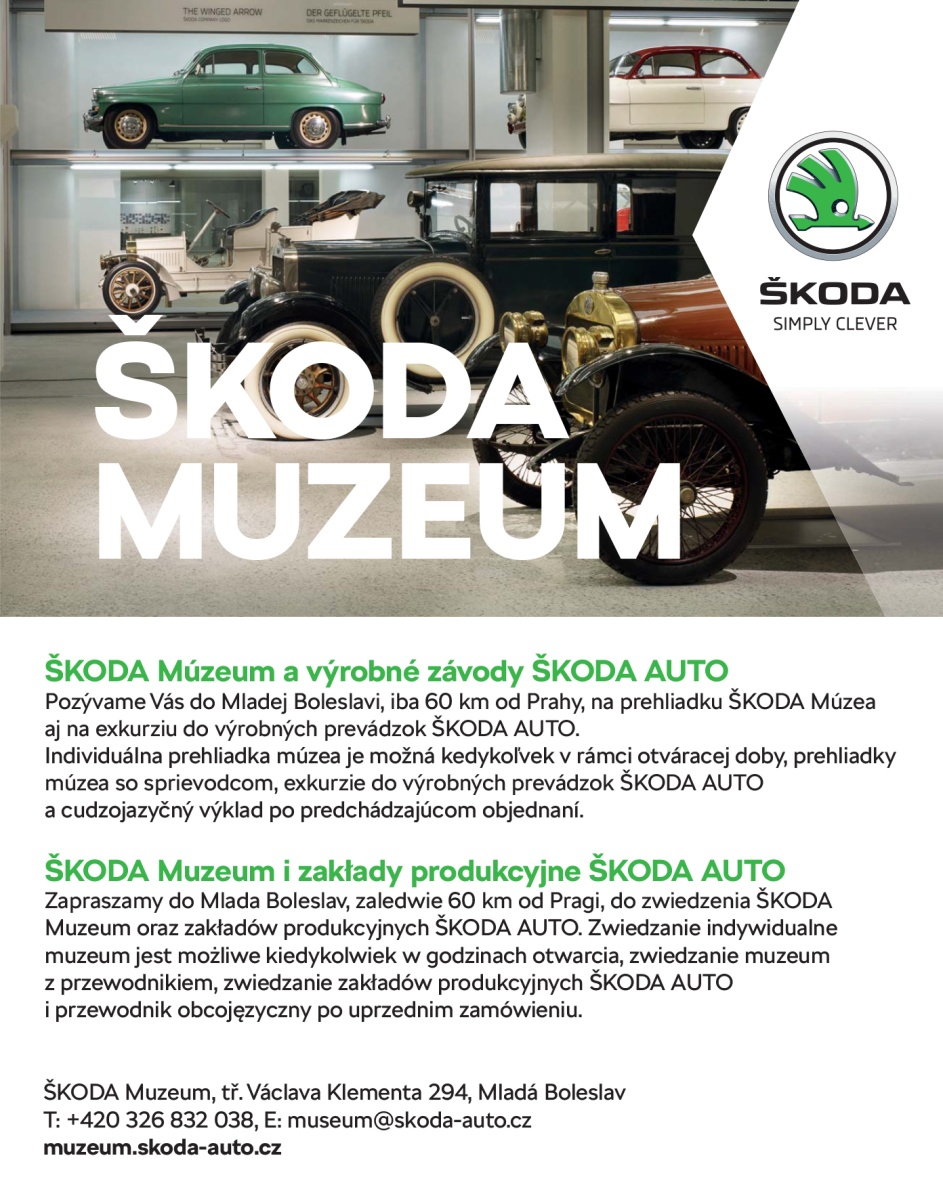 Pozývame Vás do Mladej Boleslavi, iba 60 km od Prahy, na prehliadku ŠKODA Múzea aj na exkurziu do výrobných prevádzok ŠKODA AUTO.