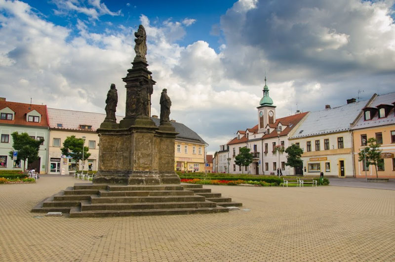 Dominantu města tvoří náměstí s mariánským sousoším ze 17. století a kostel sv. Bartoloměje z r. 1638 se vzácnou kopií sošky Panny Marie Montserratské, tzv. Černé Madony. Pod náměstím se nachází původně renesanční zámek, upravený do dnešní podoby v 19. století. Zámek se v lednu tohoto roku vůbec poprvé otevřel veřejnosti. Přestěhovalo se sem Turistické informační centrum, muzeum Čtyřlístek a Městská knihovna. Od začátku hlavní turistické sezóny si budou moct návštěvníci prohlédnout i historický prohlídkový okruh, který je věnovaný původním majitelům zámku, a to konktrétně Valdštejnům.