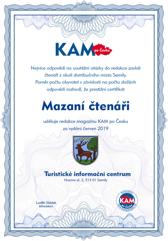Váš záznam bude z databáze Vydavatelstvím KAM po Česku s.r.o. vymazán neprodleně, nejpozději však v zákonné lhůtě.