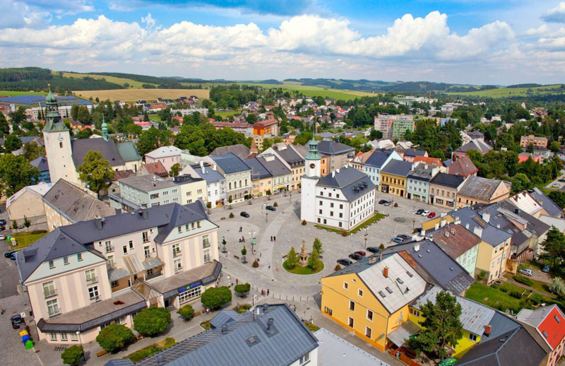 První zmínka o městě pochází z roku 1351. Nachází se v nejatraktivnější turistické oblasti Jeseníků. Nejvýznamnější architektonickou památkou a dominantou města je radnice s gotickými, renesančními a barokními prvky. Nad jejím vchodem je umístěn městský znak, který zobrazuje vlčici ve skoku prostřelenou šípem. Historické jádro města bylo vyhlášeno městskou památkovou zónou, ve které stojí sochy sv. Jana Nepomuckého a Panny Marie Immaculaty. Nyní se pyšní svým náměstím, které bylo zrekonstruováno v roce 2013.