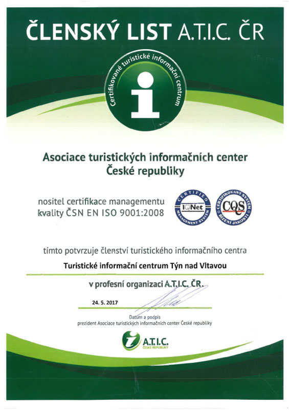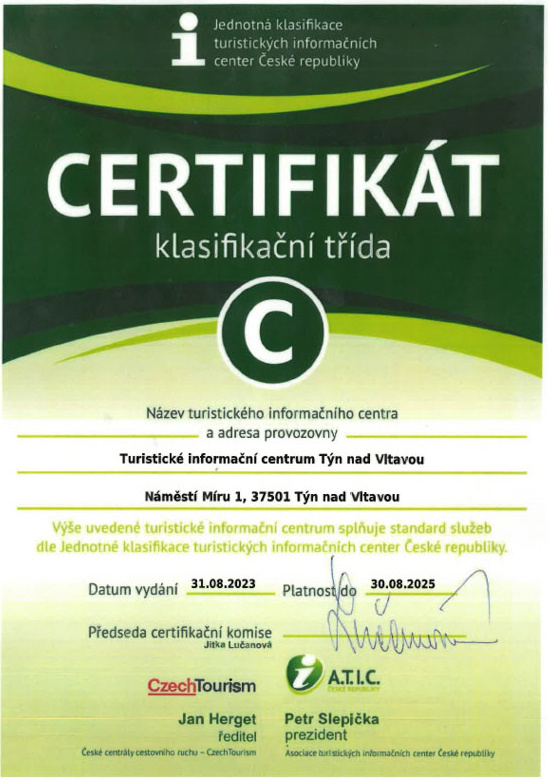adresa: Náměstí Míru 37, 37501 Týn nad Vltavou