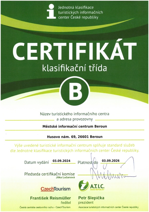 zřizovatel TIC: Město Beroun, provozovatel: Městské kulturní centrum Beroun