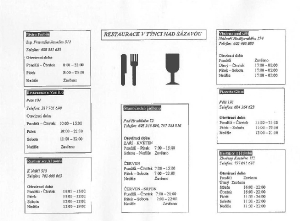 | červen, září | 8:00 - 16:00 | 8:00 - 16:00 | 8:00 - 15:00 | 8:00 - 16:00 | 8:00 - 18:00 | 9:00 – 14:00 | zavřeno |