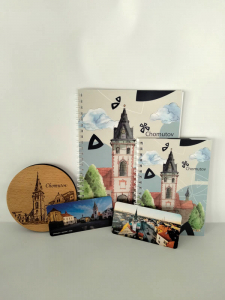co prodáváme: turistické suvenýry, upomínkové předměty, mapy, knihy o Chomutovu