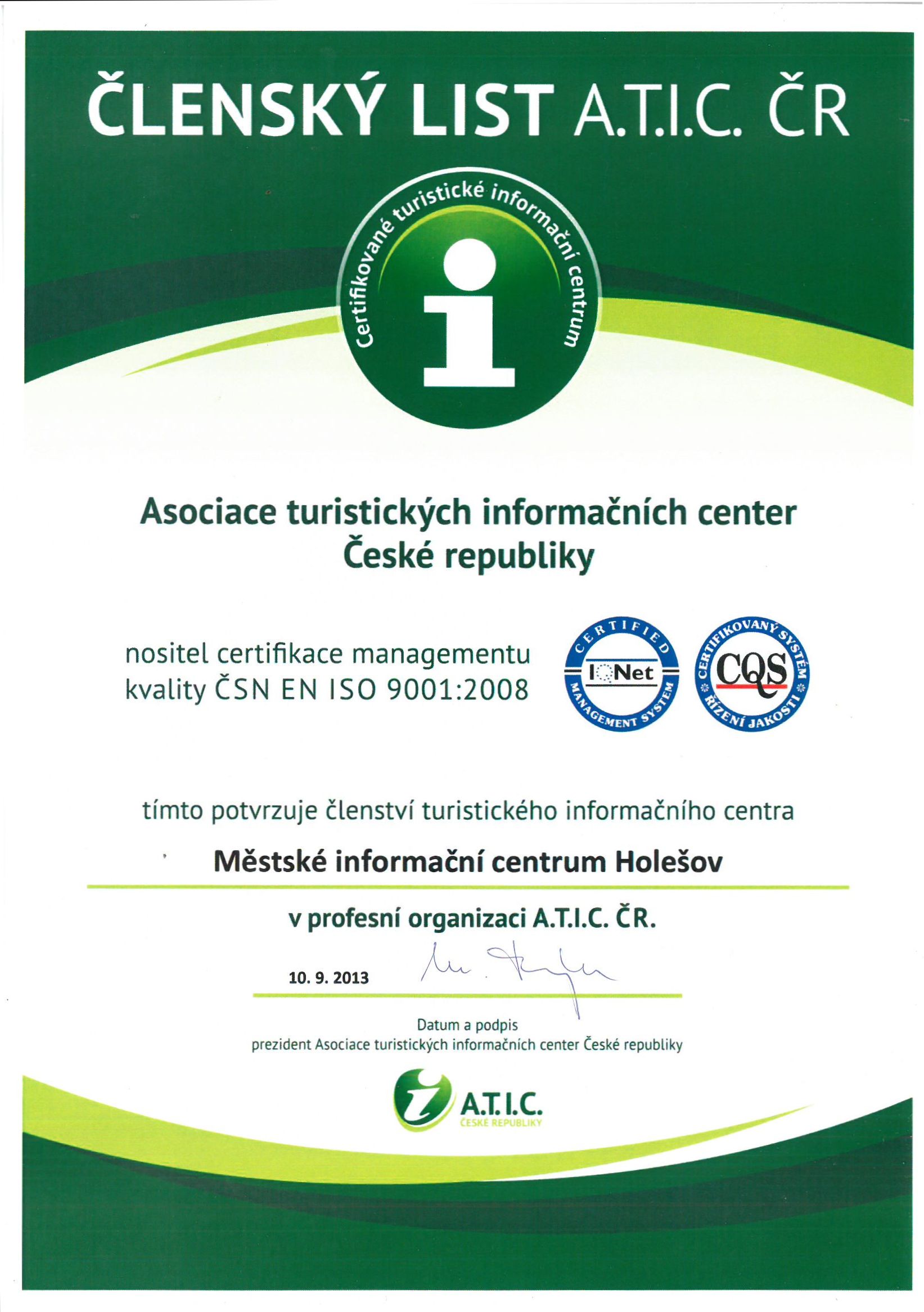 Městské informační centrum Holešov je certifikovaným informačním centrem České republiky a v rámci této jednotné klasifikace je zařazeno do kategorie B. Současně je členem Asociace turistických informačních center České republiky A.T.I.C.