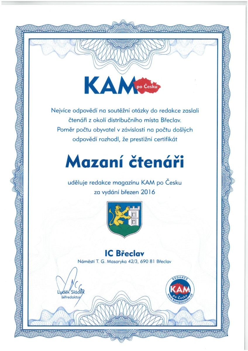 Váš záznam bude z databáze Vydavatelstvím KAM po Česku s.r.o. vymazán neprodleně, nejpozději však v zákonné lhůtě.