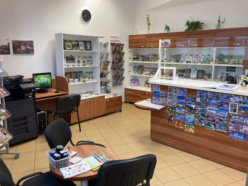 prodej map, regionálních publikací, turistických známek, pohlednic, poštovních cenin a dalších suvenýrů