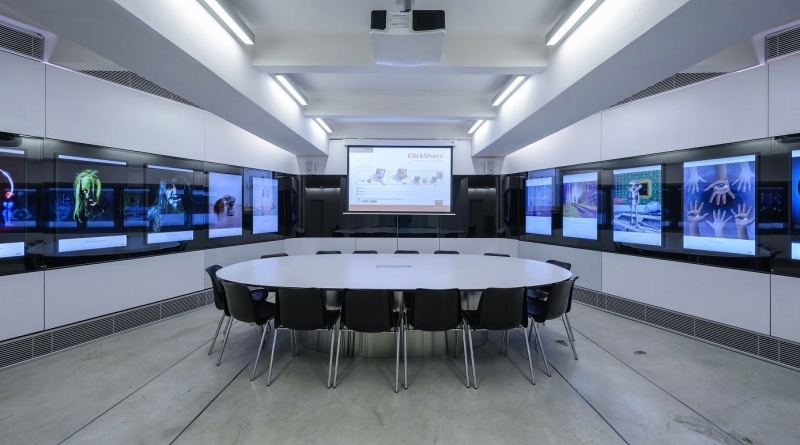 Galerie pro prezentaci elektronických a fyzických fotografií/obrazů; projektor a plátno pro účely přednášek.